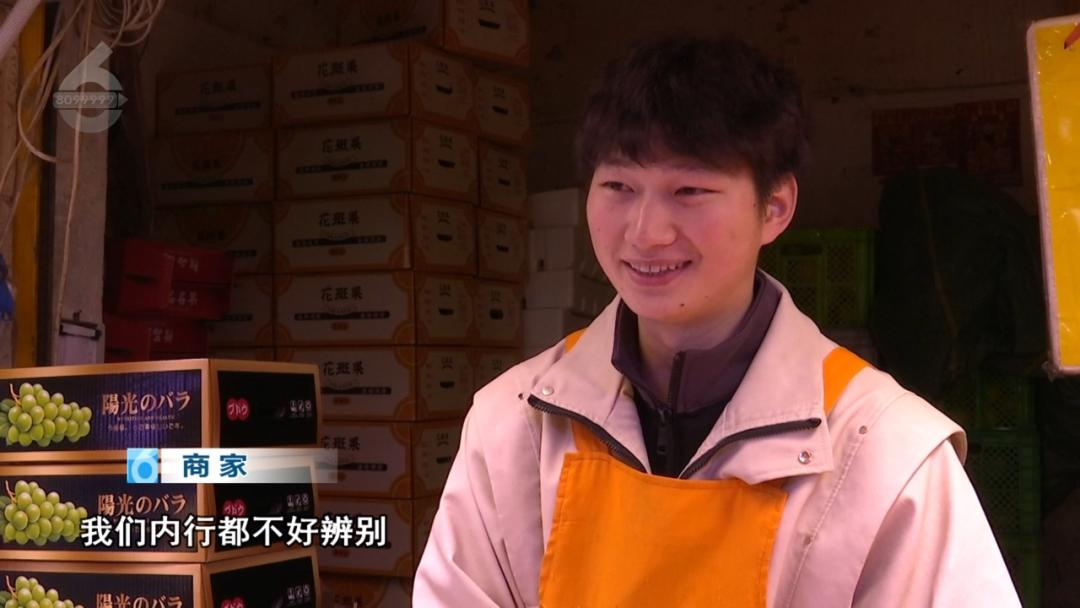 商户:“阳光玫瑰区分不了,很难区分。”记者:“包装能辨别吗?”