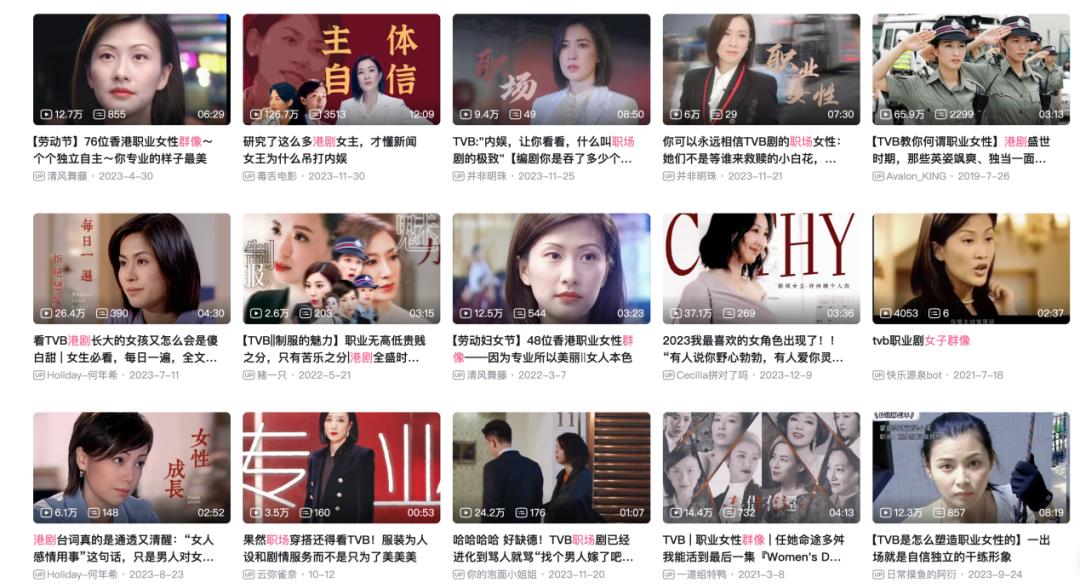 近年来,“职场港剧的女子群像”在社交媒体上掀起一股回忆杀热潮,网友们剪辑二创、拼贴金句,为喜爱的女性角色讨论盖楼,直呼“TVB港女就是我的人生成长导师”。伴随着郑秀文激昂唱出的“请抛开小姐的娇态,决意抗拒把姿色拍卖,告诉你女人永不说败”,观众们表达着对港剧里英姿飒爽、独当一面的精英女子们的怀念,“她们不是等谁来救赎的小白花,打拼从不靠一腔热血而是实力过硬,野心勃勃充满生机”“看TVB长大的女孩又怎么会是傻白甜”。调查数据显示,港剧特别是职场剧已经成为许多观众儿时的职场启蒙,其中95后女性观众群体尤为活跃,她们在弹幕互动中的参与度几乎是男性的两倍。