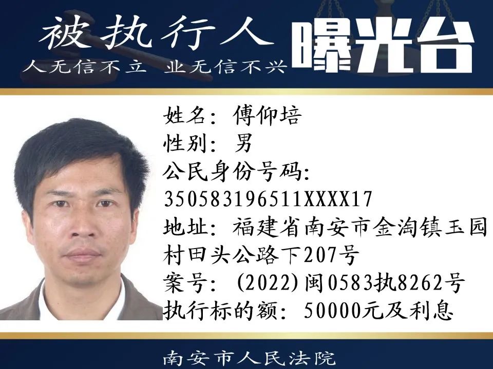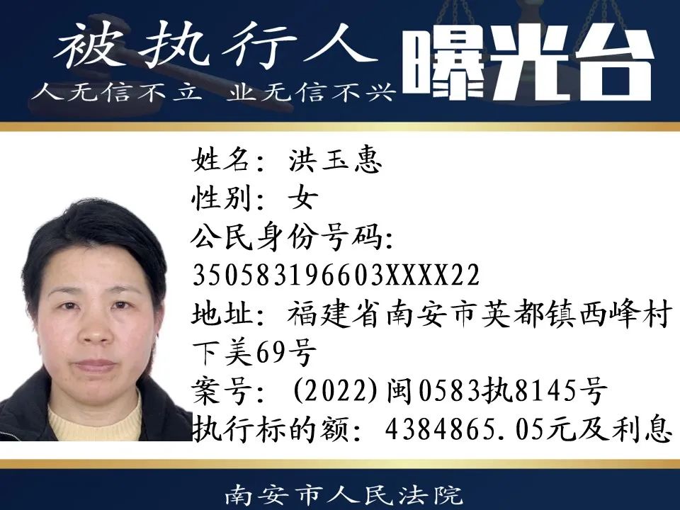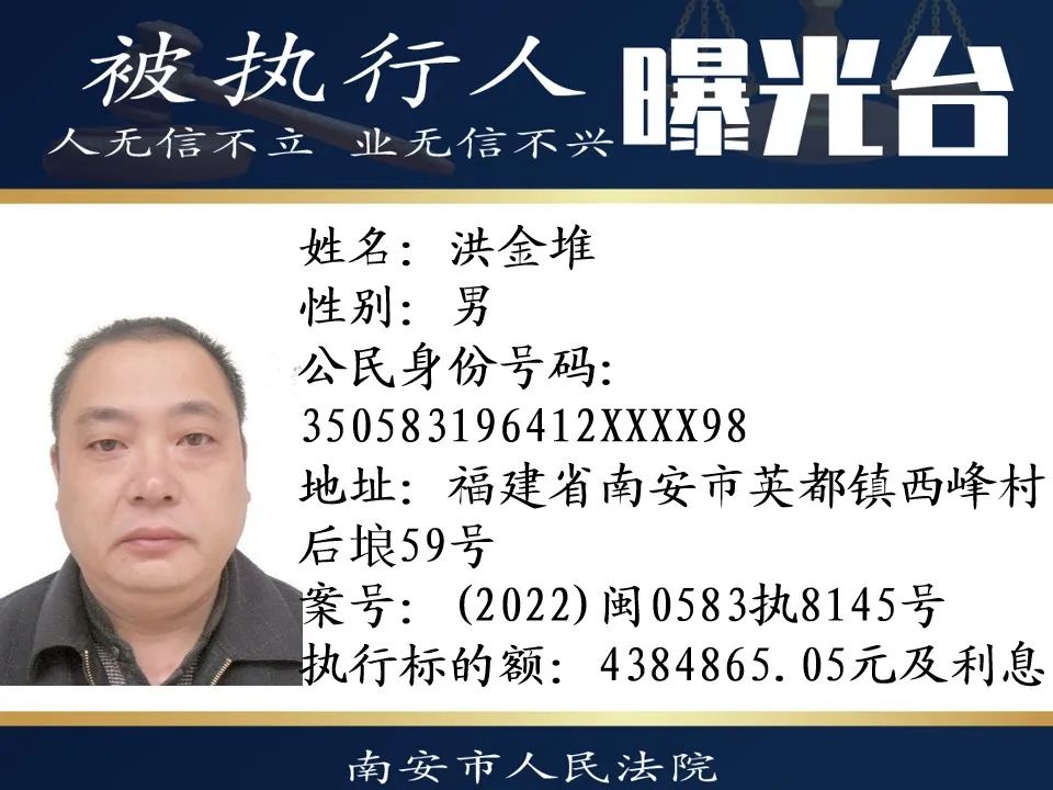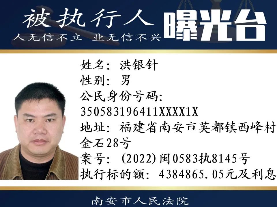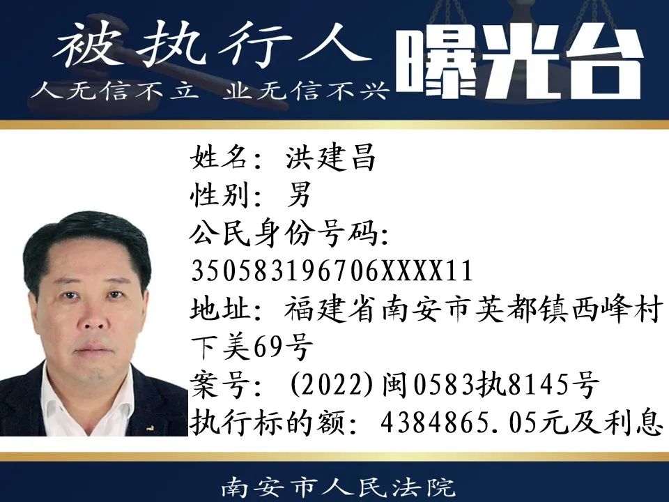 原标题:《关注!南安新增一批失信被执行人(2024年第60期)》