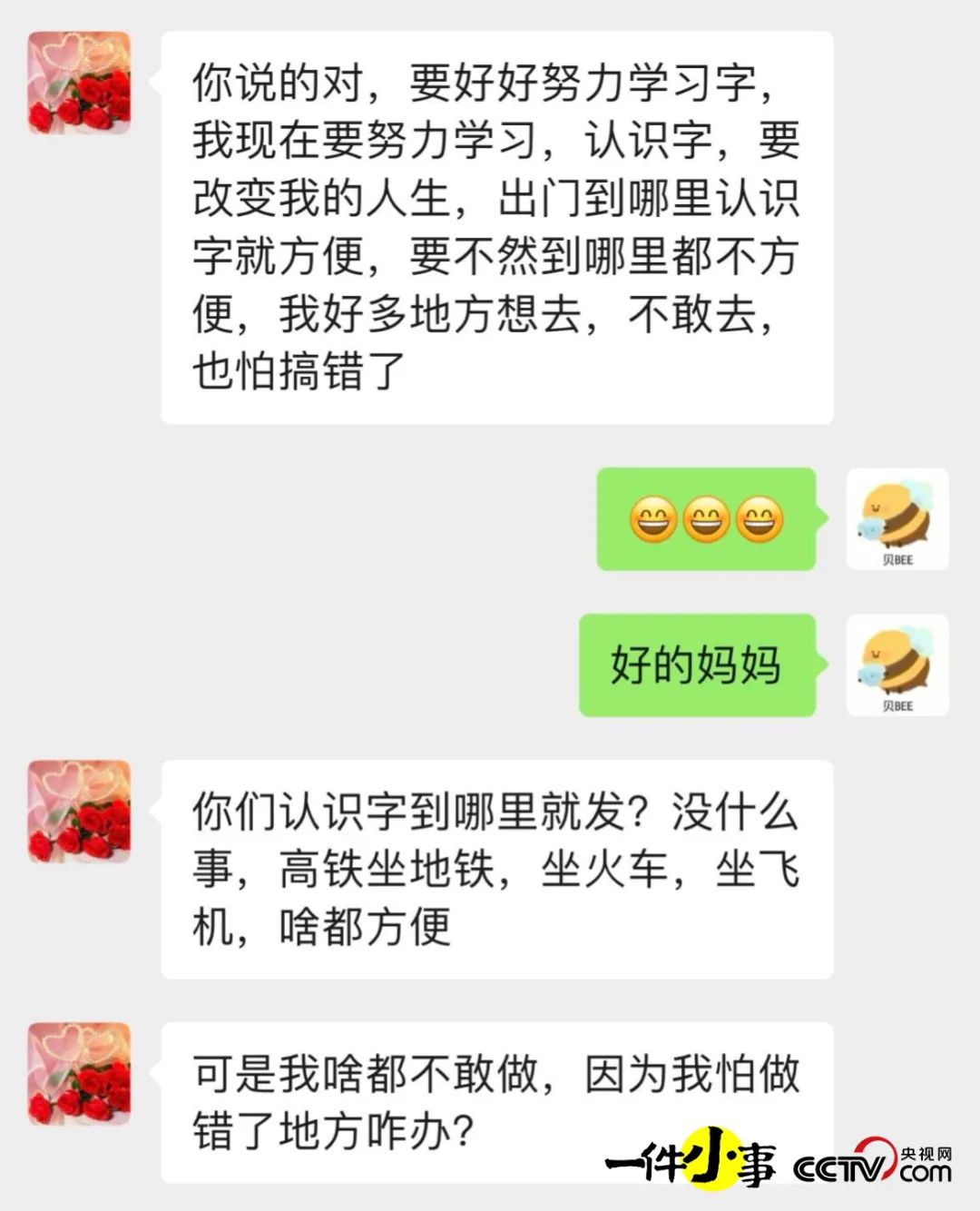 左:2024年1月,右:2024年9月。识字的进度,在母女俩的聊天框里直观体现。眼见学生如此好学,陈军飞老师很满意,“虽然现在还不会写,但我们毕竟时间、精力有限,能认字就已经很不错了,先解决眼下的困难,保证日常生活,其他的慢慢来,不急。”