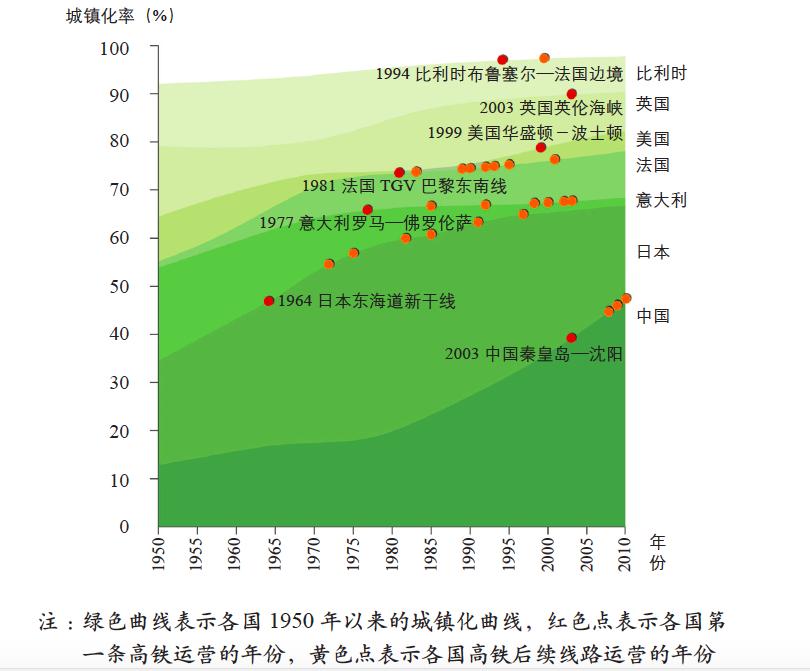 而我国高铁大规模建设时,处在城镇化率加速上升的过程中,大量人口涌入,城市空间快速发展。