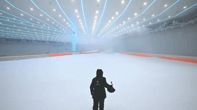 室内索道则为中、高级滑道服务。工作人员温柔提示:“索道不是游乐项目,只上不下。下索道时需要一定技术,不然容易摔跤,不建议滑雪小白试坐。”