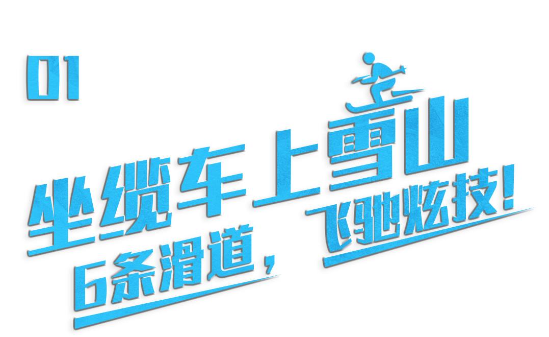 雪场面积当于8个标准足球场,垂直落差达24层楼高。因为面积太大、落差太高,所以雪场专门配了脱挂式索道帮大家登顶滑雪。