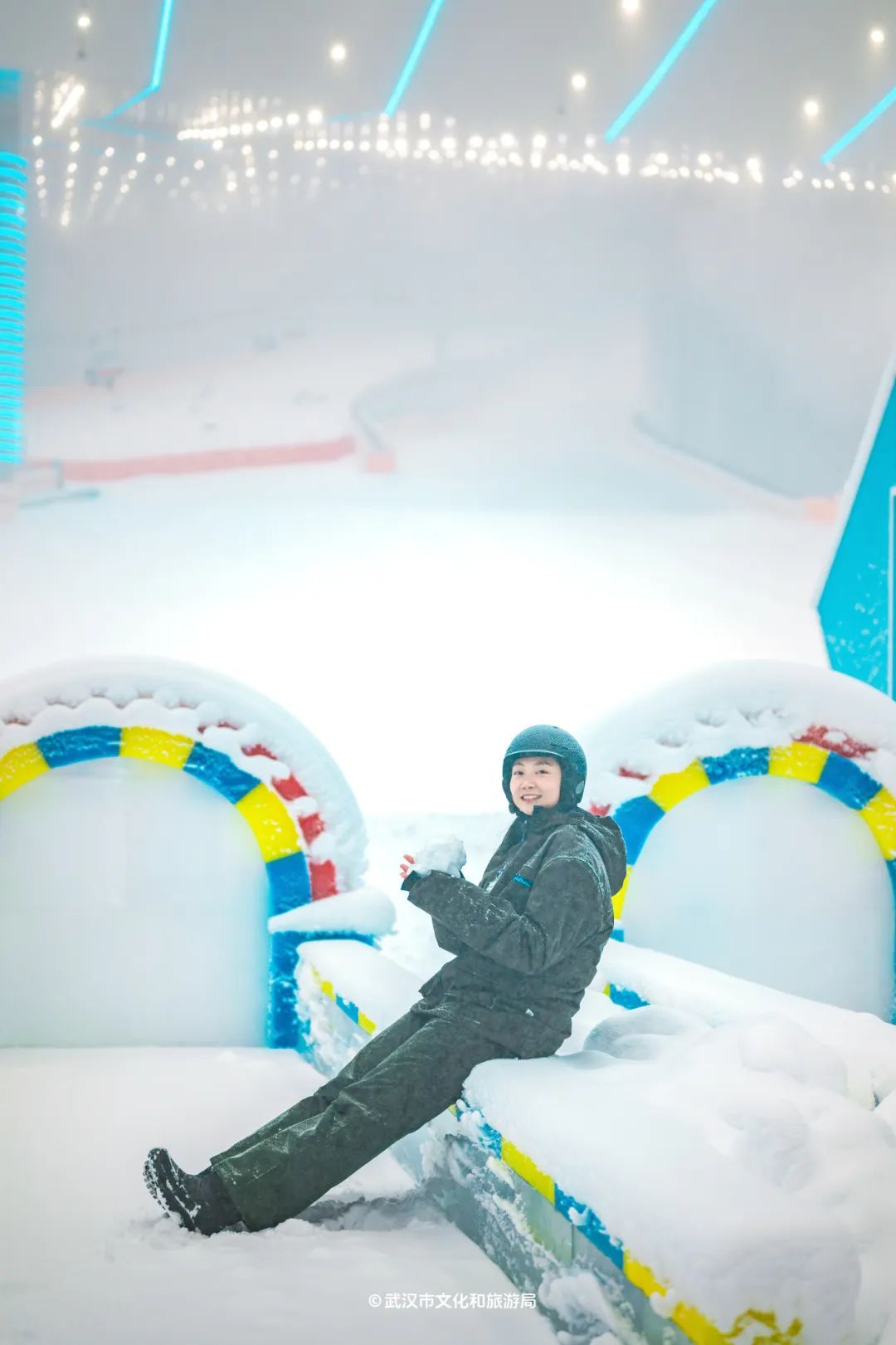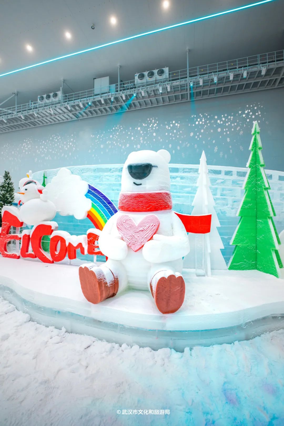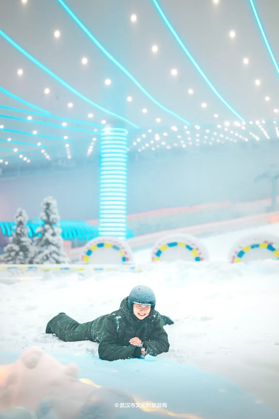 如果不想滑雪,这里也有武汉最大面积的娱雪区:看冰雕、堆雪人、赏极光秀……尔滨同款快乐,家门口就拥有。