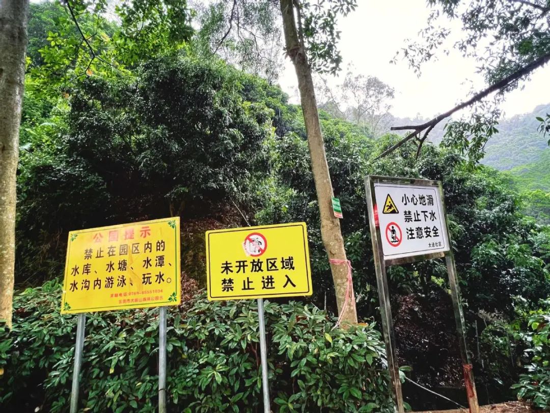 东莞市大岭山森林公园属于自然公园,存在未开发或未向社会开放的区域。近期发现有部分户外运动探险爱好者私自组织进入公园未开发、未开放区域开展探险、游玩等户外活动。鉴于这些区域地形错综复杂、极为险峻,加之普遍处于手机信号覆盖不到的盲区,同时缺乏必要的道路指引标识和安全防护措施,因此潜藏着极为严峻的安全风险和隐患。在此类环境中,人们极易遭遇走失迷路、体力耗尽、攀爬时跌落以及野生动植物侵袭等各类突发意外,这些意外情况往往会导致严重的人员伤亡,并且由于环境的恶劣,救援行动也将面临极大的挑战和困难。由此,游客进入未开放区域将面临巨大的生命财产安全隐患。