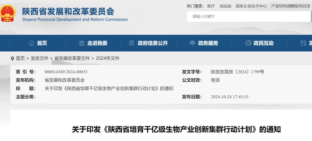 近日,陕西省发展改革委网站发布了《关于印发〈陕西省培育千亿级生物产业创新集群行动计划〉的通知》。抢抓生物技术与产业创新快速发展机遇,发挥我省生物资源富集优势,推进生物产业创新集群加快建设,做大做强生物经济,增强陕西高质量发展新动能。