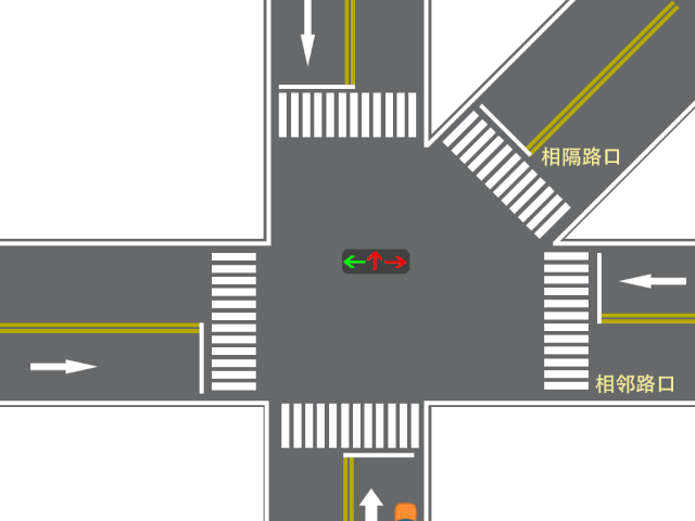 如果只有左转和直行车道的,右前方则算直行。这种路口,信号灯的示意一般也是很好分辨的。当然