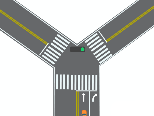 很多车主遇到这种路口就懵了,这么正的Y字型,哪边才是直行呢?其实不必担心,这种情况看地面的道路标线就行了。有直行和右转车道的,说明左前方是直行。