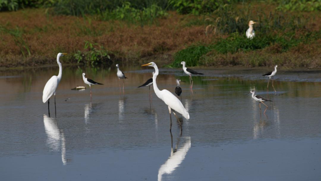 滨海湿地是生物多样性最为丰富的生态系统之一。鹭类,是滨海湿地常见的鸟类,通常是指鹈形目鹭科水鸟,如大白鹭、中白鹭、白鹭等。