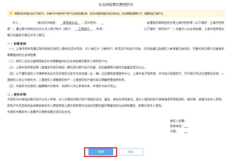 第三步:进入“个人委托扣款协议授权”界面,确认信息无误,点击“同意”并验证手机号后,委托扣款协议签订成功。