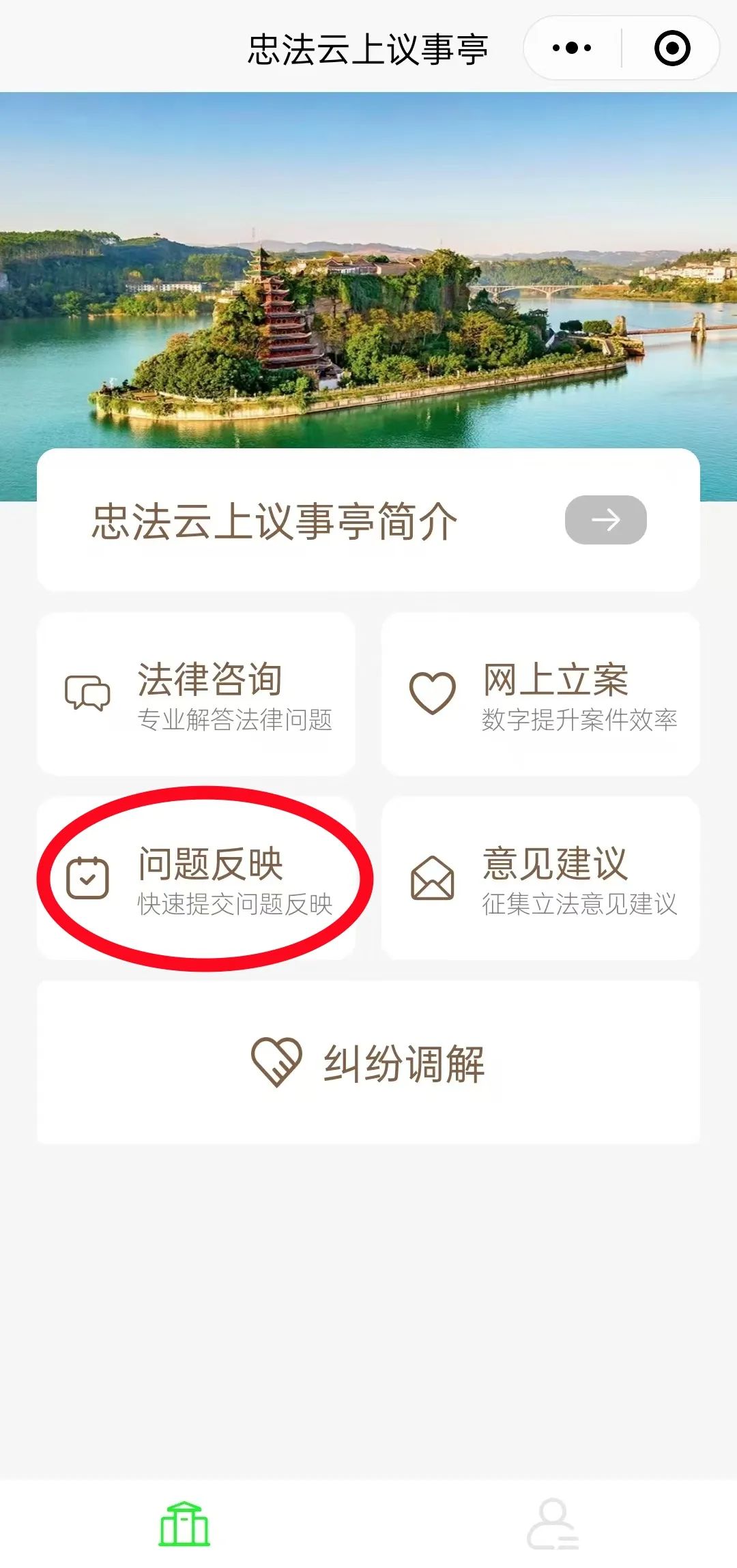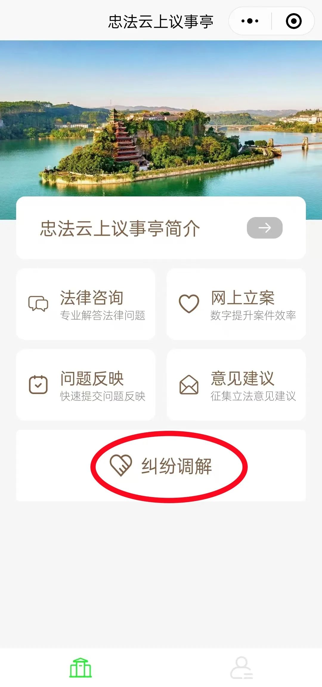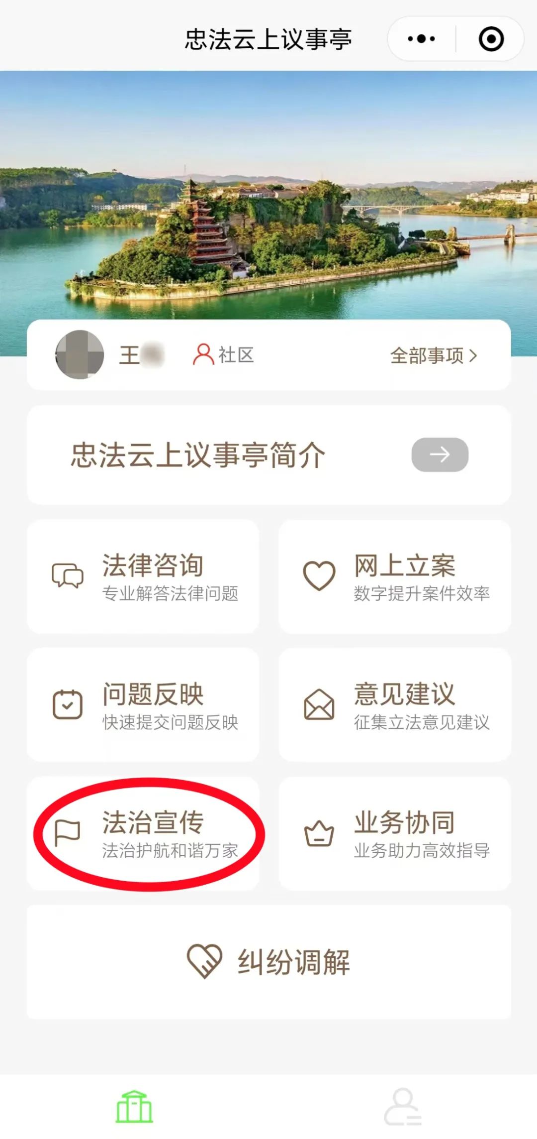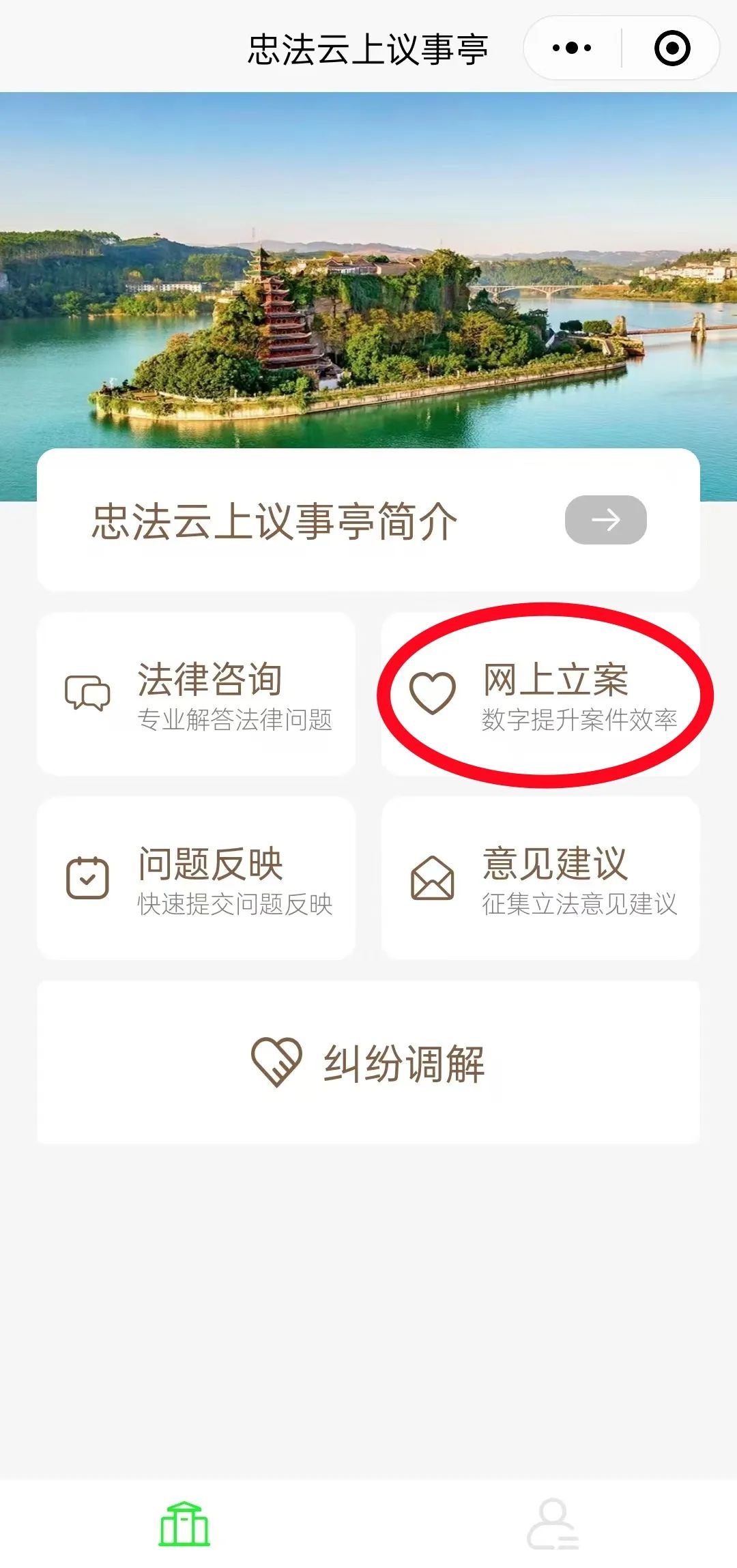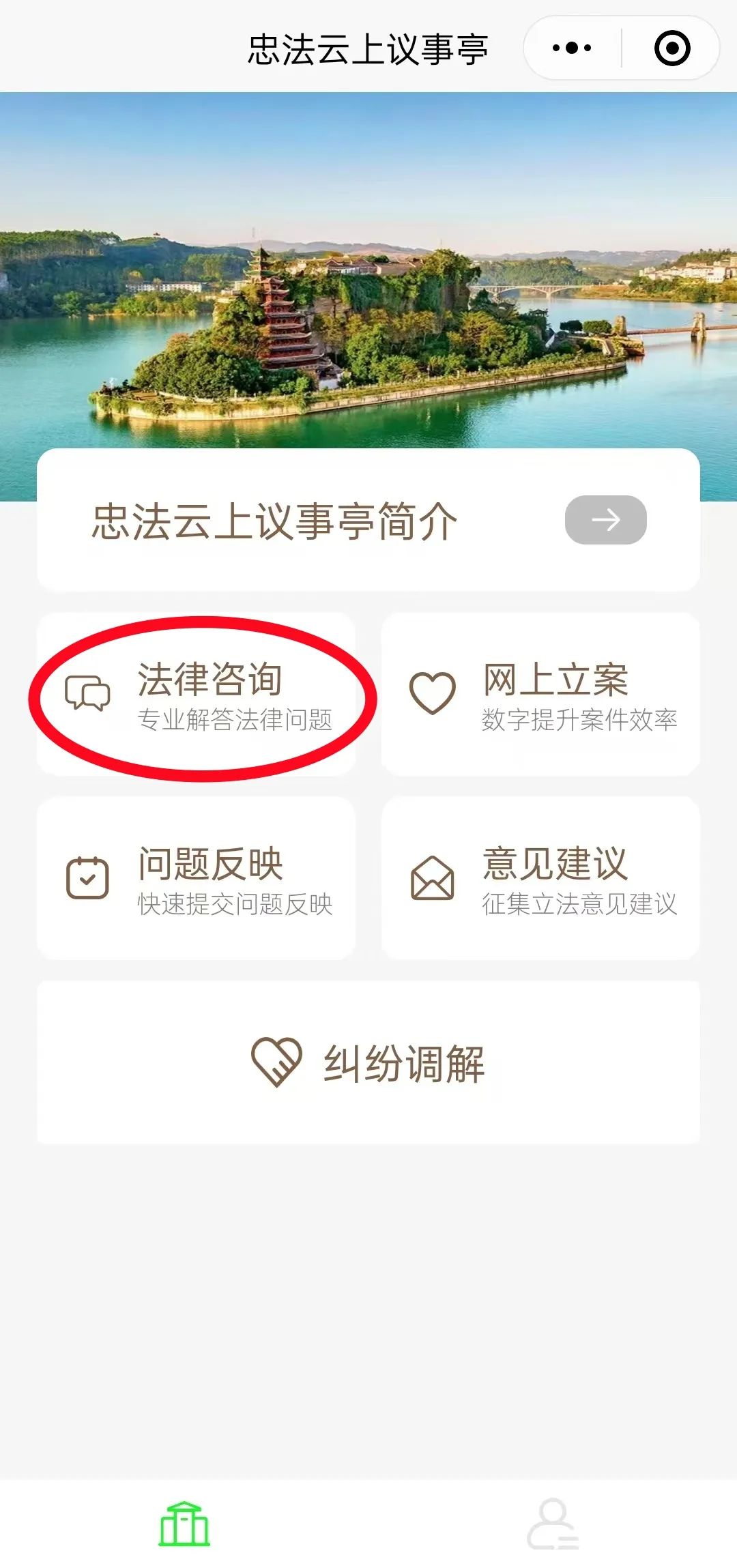一是关注“忠县法院”微信公众号,点击最下方的“忠法云亭”板块。