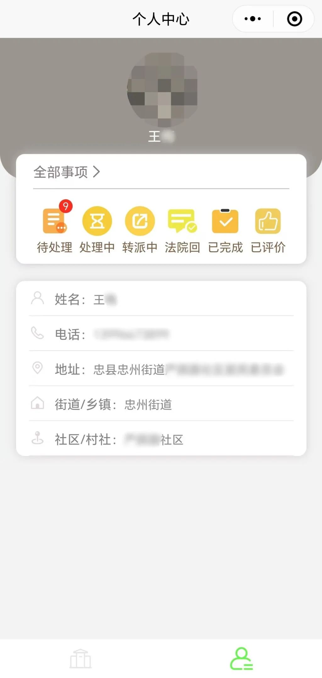 此外,群众、村社干部在提交“工单”后,还可在首页“全部事项”或“我的”选项中,查看工单办理进度,实时了解诉求办理情况,并可在工单处理完毕后,对办理情况进行评价。