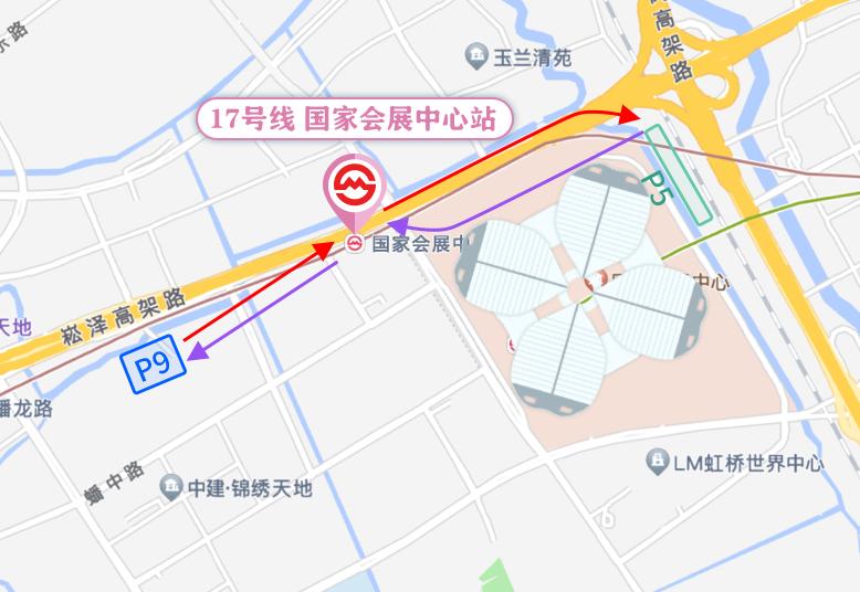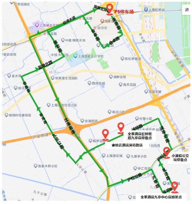 P9停车场内、轨交17号线国家会展中心站(上客点借靠崧泽大道诸光路公交站、下客点借靠蟠秀路会恒路公交站)、P5停车场内。