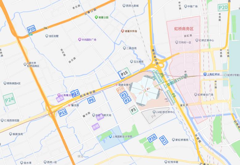 本届进博会设置5处停车场作为社会车辆即停即走下客点,分别为:P1、P6(仅7:00—12:00支持小客车)、P8、P15和华翔路1535号(仅支持小客车)。车辆下客完毕后应立即驶离哦!