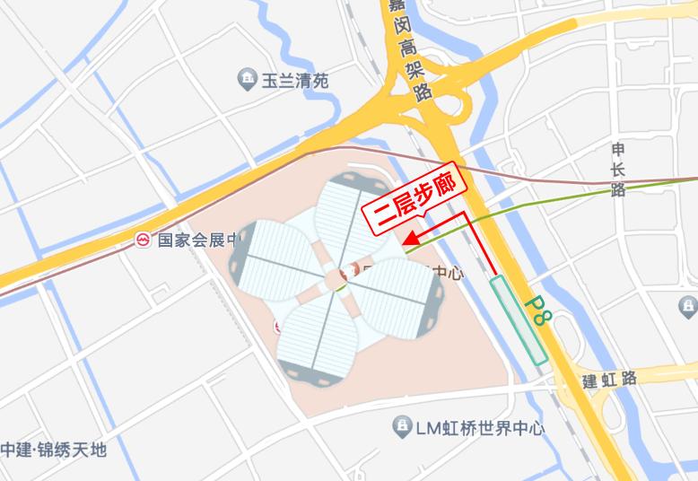 P8停车场 →二层步廊→ 国家会展中心