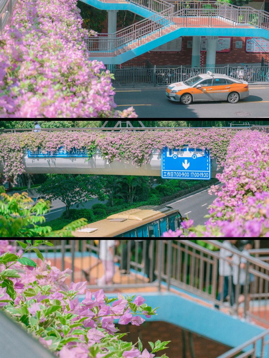 除了玫瑰金,三角梅还有玫瑰粉。当你路过这条天桥的时候,浪漫就已经属于你了。
