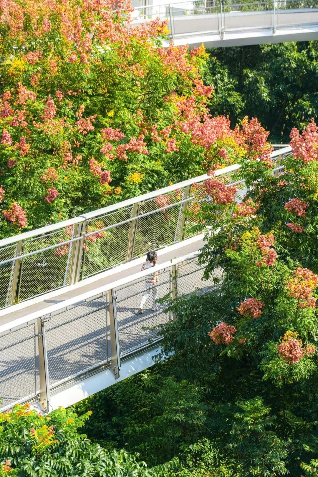 这里有汹涌的三角梅,在悠然园也有浪漫的栾树,螺旋步道上,一束束大粉色的栾树在秋天绽放。