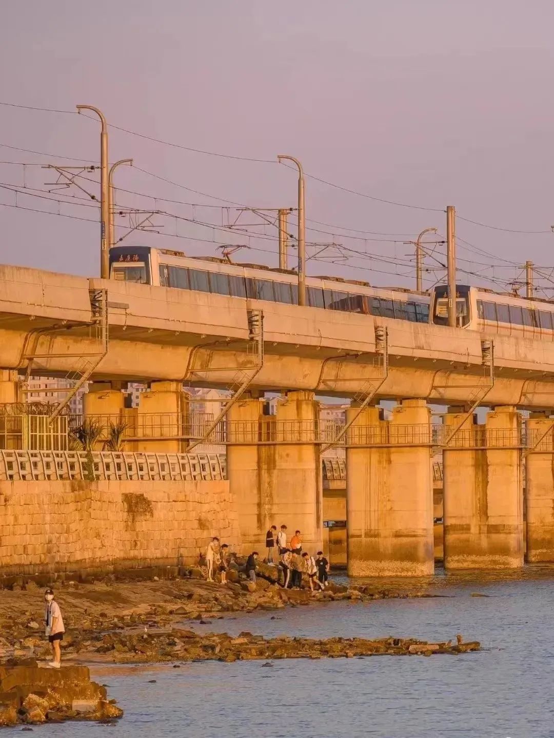 被橘色铺满的海面、远处驶来的地铁,还有一场“橘子汽水味”的日落,谁见了,都要狠狠心动。
