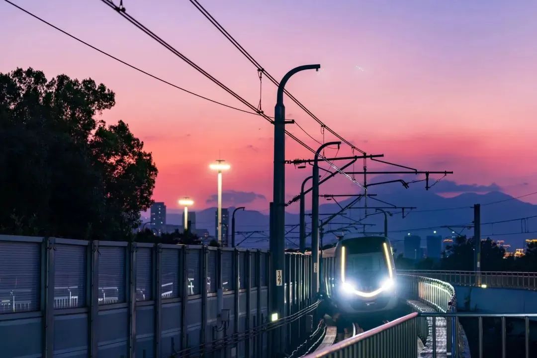 地铁在落日黄昏中行进,穿越大半座城市,一路追赶着日落,奔赴山海。