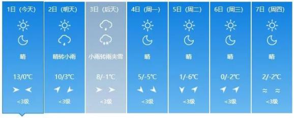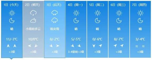 未来一周省内各地天气预报
