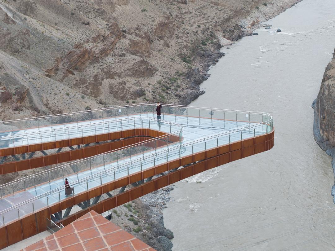 ▲ 观景台的高透玻璃发卡弯