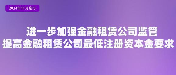 金融监管总局修订发布了《金融租赁公司管理办法》,自2024年11月1日起施行。《办法》共有9章。主要修订内容如下:一是修改完善主要出资人制度。提高金融租赁公司最低注册资本金要求,增强风险抵御能力;新增国有资本投资运营公司、国有金融资本投资运营公司和境外制造业企业三类主要出资人类型;适当提高主要出资人的总资产、营业收入、注册资本等市场准入标准以及最低持股比例要求,强化主要出资人的股东责任。二是强化业务分类监管。按照业务风险程度及所需专业能力差异,进一步厘清基础业务和专项业务范围,删除非主业、非必要类业务,严格业务分级监管。三是加强公司治理监管。进一步明确了金融租赁公司党的建设、“三会一层”、股东义务、薪酬管理、关联交易、信息披露等方面监管要求。四是强化风险管理。明确金融租赁公司资本充足、信用风险、流动性风险、操作风险以及重大关联交易等方面的监管要求,优化增设部分监管指标,明确监管评级、监管强制措施等方面要求。五是规范涉外融资租赁业务。明确相关业务经营规则,明确金融租赁公司在境外设立项目公司作为专项业务进行管理。六是完善业务经营规则。详细阅读>>