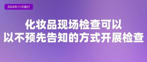 国家药监局发布了《化妆品检查管理办法》,《办法》是我国化妆品监管领域第一次系统地规范化妆品检查工作的规范性文件,自2024年11月1日起施行。《办法》提出,现场检查可以预先告知被检查对象检查安排,也可以以不预先告知的方式开展检查。非现场检查包括对被检查对象提交书面材料的检查、利用数字化技术手段开展远程检查等。派出检查单位应当派出具备与检查工作相适应的法律知识、专业知识、培训经历的检查人员开展检查。检查人员应当不少于两名。必要时,派出检查单位可以邀请相关领域专家参加检查工作。详细阅读>>
