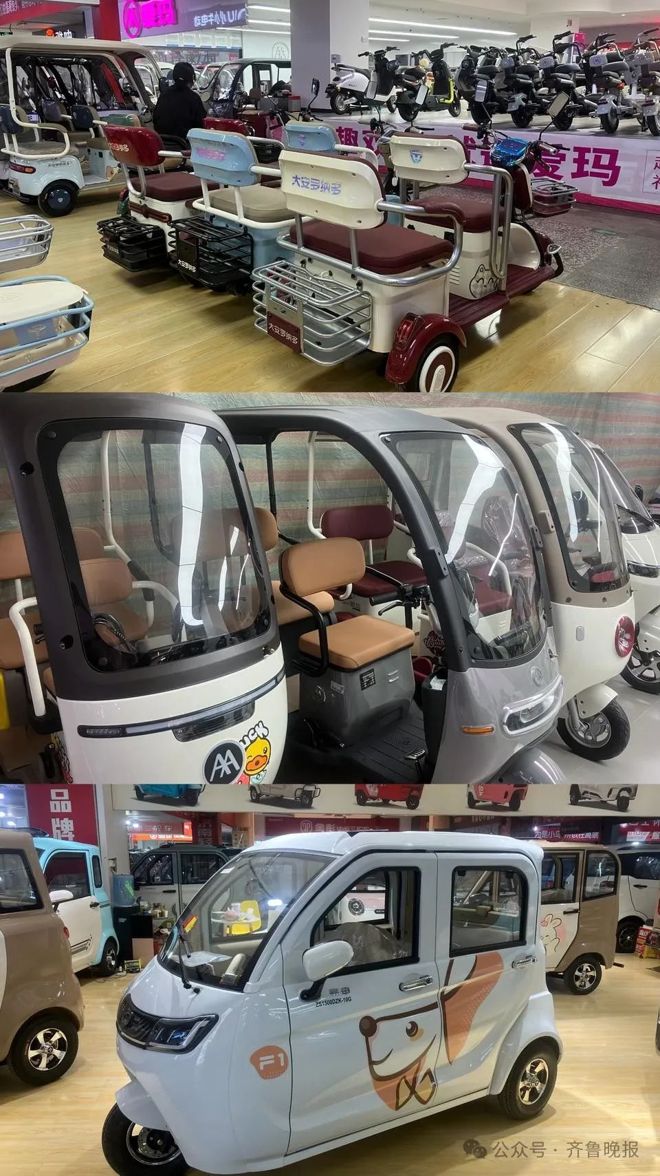 济南黄台电动车批发市场涵盖了各种款式的“老头乐”(上为开放式,中为半封闭式,下为封闭式)。李文璇 摄