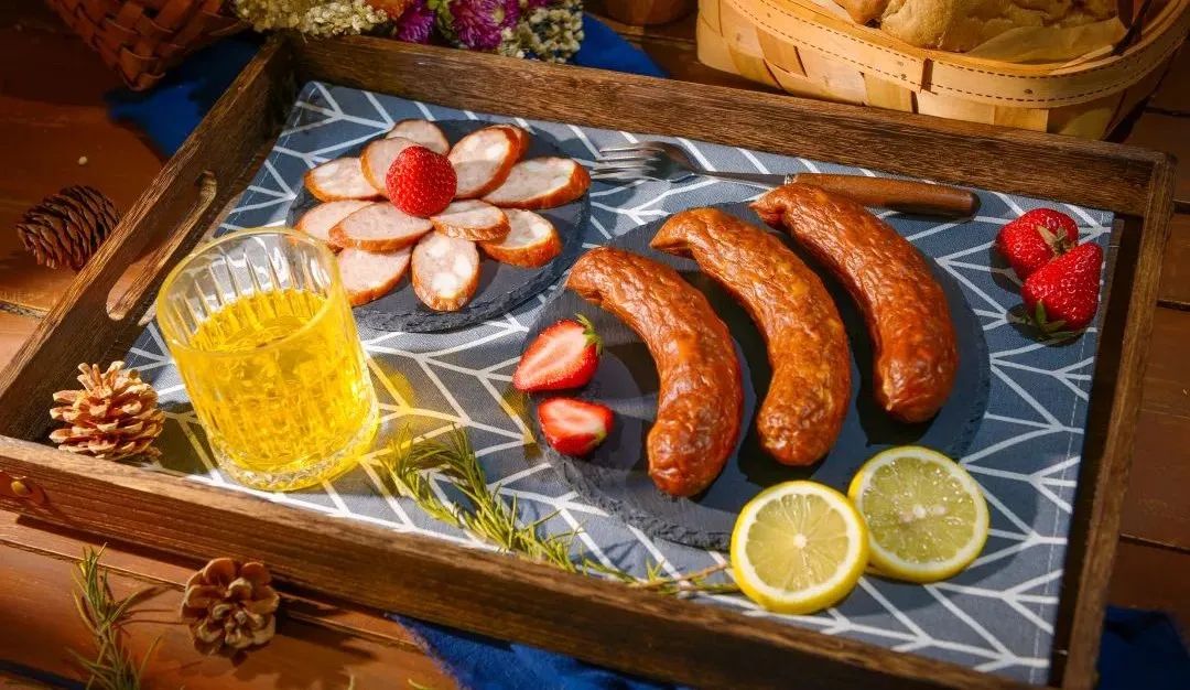 采用欧洲传统加工工艺,结合现代科技配方,精选优质猪肉原料和天然肠衣,并配有来自著名产地的胡椒、肉蔻等精良辅料,严格按照多道工艺要求,用果木或硬杂木两次烤制而成。2.秋林里道斯: