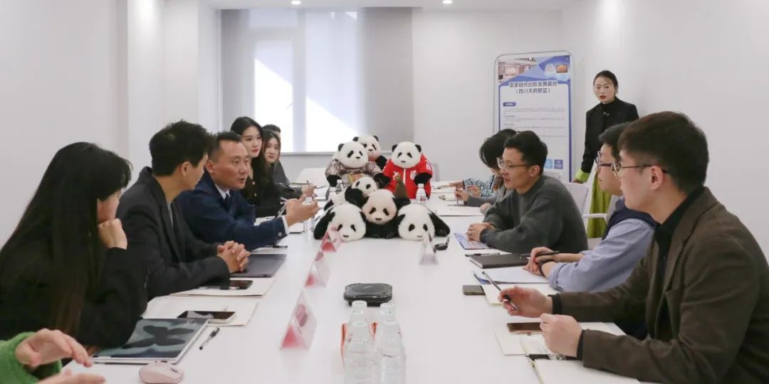 下午1点,在距离沙龙正式开始1小时前,熊猫工厂员工还在为即将到来的沙龙做着会场布置,四川天府新区文创和会展局国际合作部部长刘麒和国家版权创新发展基地(天府新区)相关负责人一行就已来到了胡玉路的办公室。