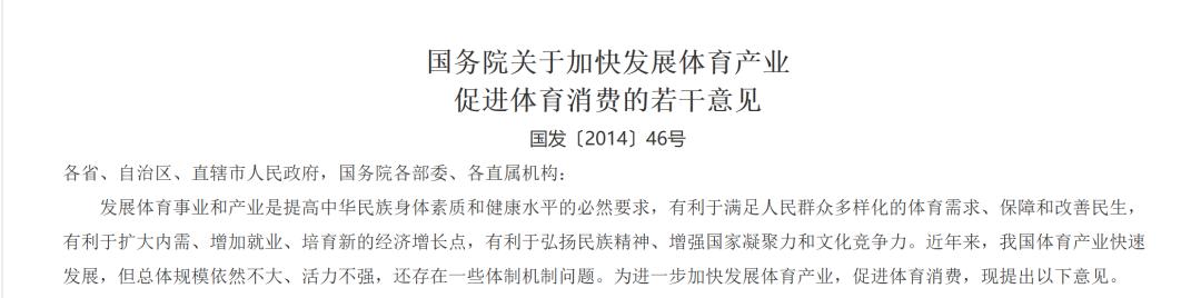 2013年,国务院印发了《关于加快发展体育产业促进体育消费的若干意见》,把全民健身上升为国家战略。