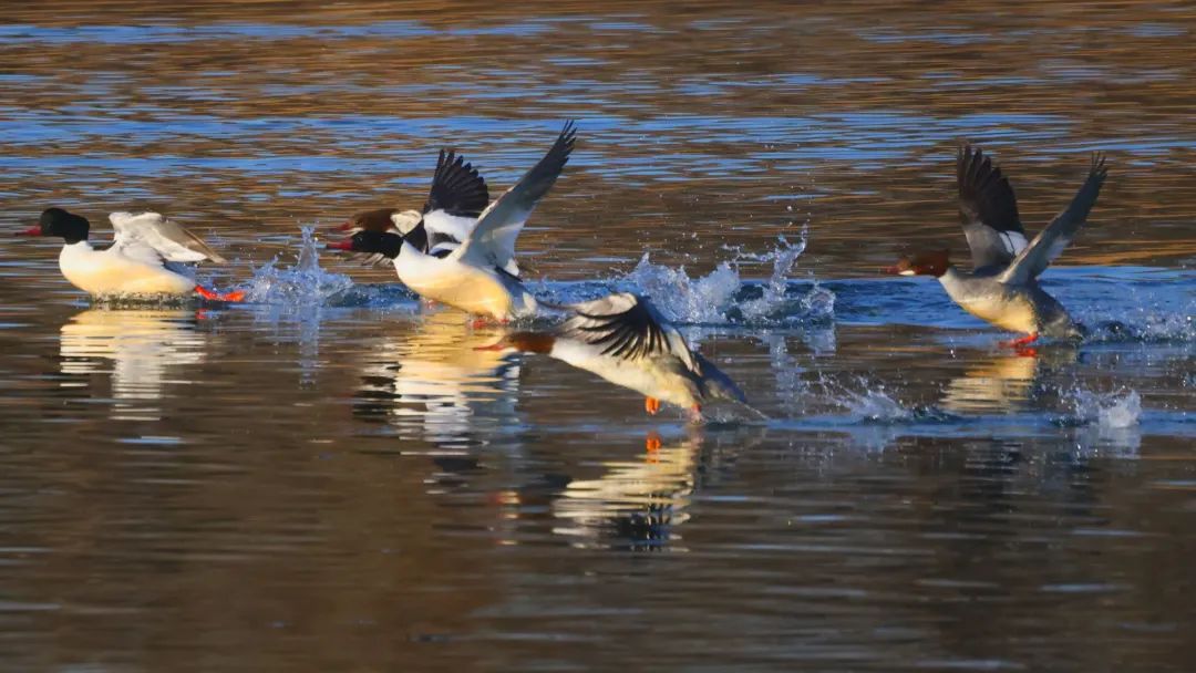 通州区甘棠闸下游北运河河道上,一群普通秋沙鸭结伴栖息。随着环境越来越好,城市副中心已经成为重要的鸟类繁殖地。白继开摄