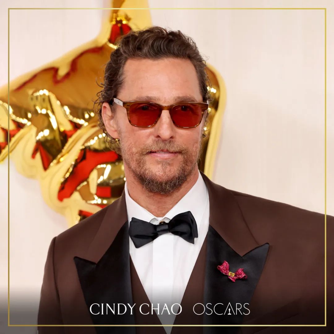 ▲奥斯卡影帝Matthew McConaughey佩戴CINDY CHAO出席2024年奥斯卡,今年刚好正逢他拿下影帝的十周年纪念。
