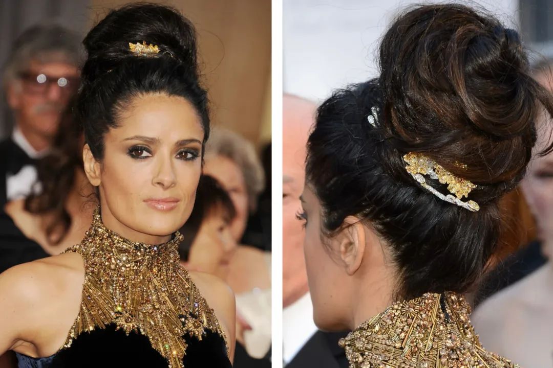 2017年墨西哥女演员Salma Hayek在发髻间点缀了一件CINDY CHAO的枫叶走上奥斯卡红毯。作为全球时尚巨头开云集团的老板娘,她的选择无疑也证明了站在国际艺术金字塔尖的圈层对于CINDY CHAO的喜爱。
