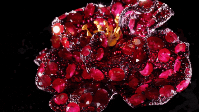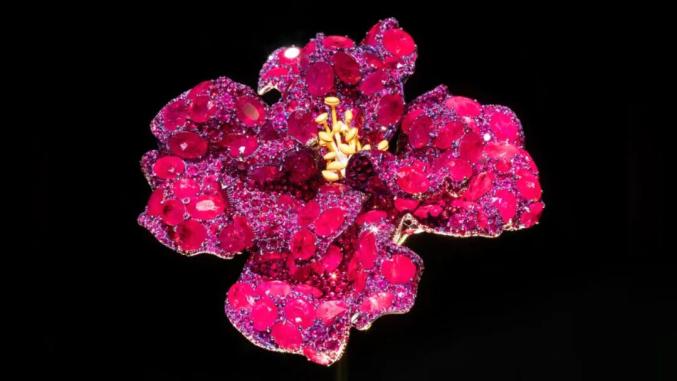 ▲这枚牡丹胸针运用重达220克拉的红宝石打造,修修改改了10年才完成。Cindy Chao曾分享说这枚胸针制作到了第8年时,法国工匠胸有成竹地对她说:“这次你一定不会再拒绝我们了”。结果Cindy Chao还是不满意,她回复工匠说:“有一片花瓣上红宝错落的位置影响到它的起伏了。”由于钛金属底座是无法修改的,为了那一片花瓣,整朵花要被拆开重塑。这就是Cindy Chao对于艺术的极致的追求:“如果我没有看到一朵正在绽放的花,就必须重新再来”。