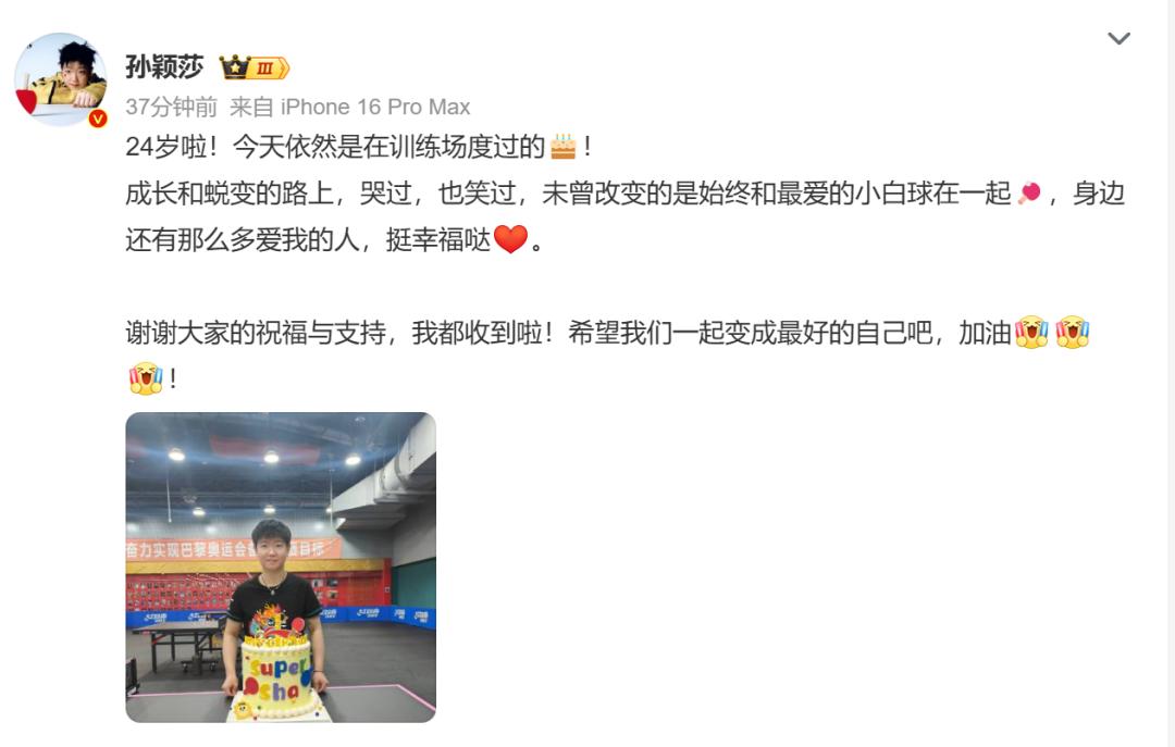原标题:《热搜第一!孙颖莎24岁生日发文回应祝福与支持,已斩获13个世界冠军》
