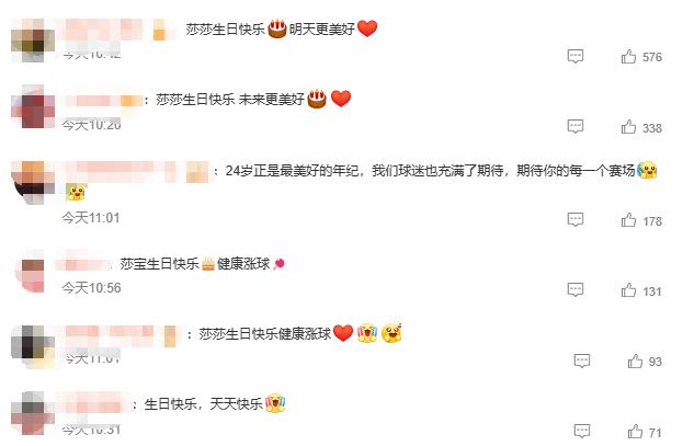 球迷们也纷纷为孙颖莎送上生日祝福:莎莎生日快乐,健康涨球