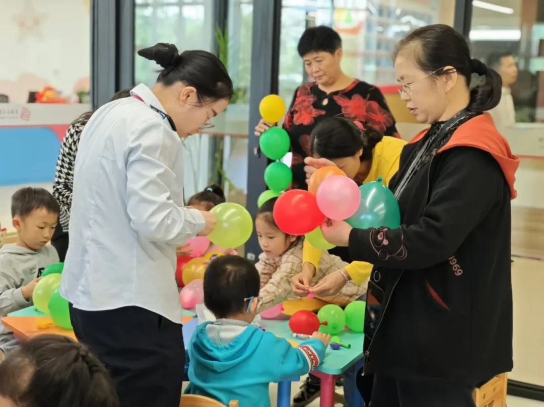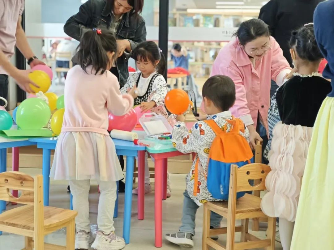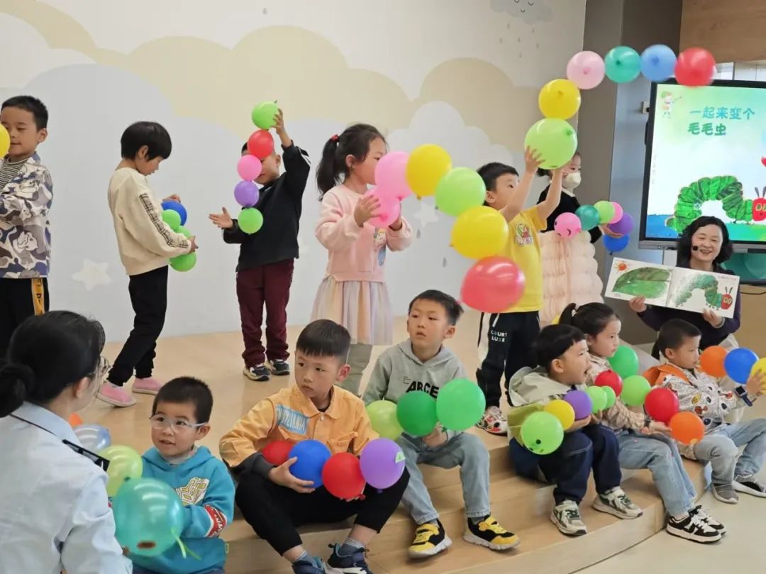 亲子绘画“一起来变个毛毛虫”。孩子和家长选择喜欢的气球颜色,用气球制作毛毛虫身体,并能进行简单装饰。激发孩子和家长的创造力,共同设计独特的毛毛虫形象。老师鼓励孩子们发挥想象力,创造属于自己的毛毛虫。通过共同制作毛毛虫,增进亲子间的沟通与协作。