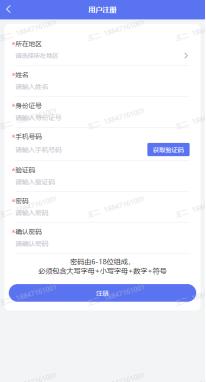 首次使用景德镇网约房与租屋采集服务系统用户需注册登录账号,输入所在地区、身份证号、手机号等信息,注册成功后,即可登录系统。