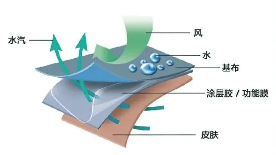 防水、透气看似矛盾的一对功能,在冲锋衣上靠着多层结构,都能实现,当中的防水透气膜扮演着至关重要的角色。