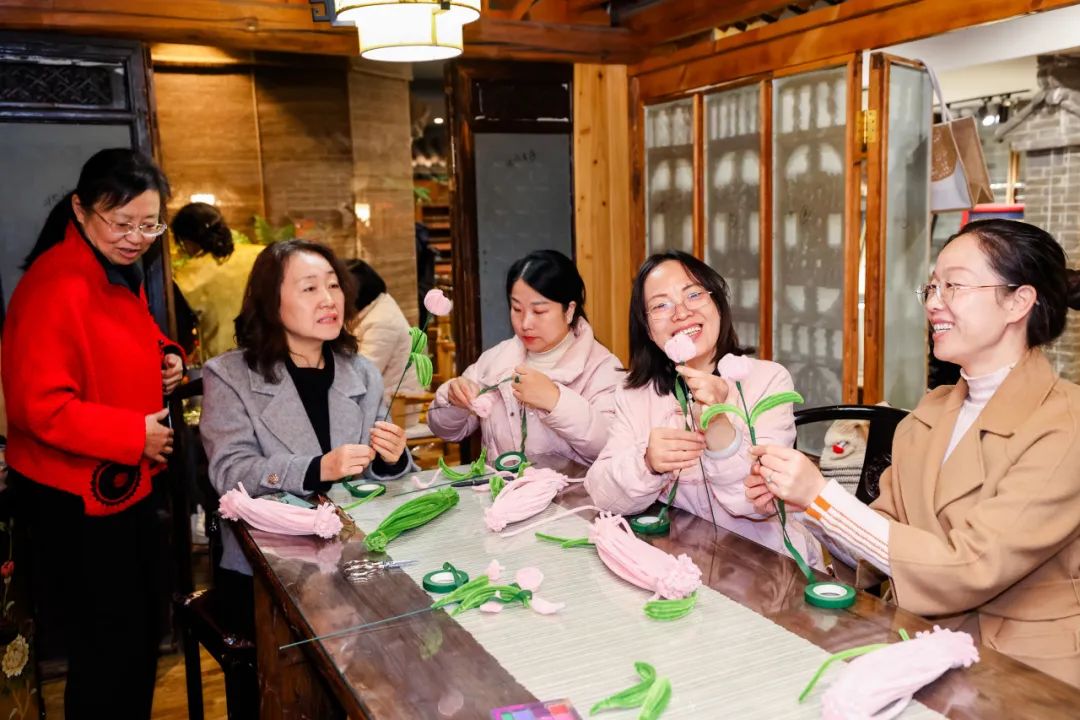 同时,还开设插花、拓印、掐丝珐琅、景泰蓝制作、绳艺等群众喜闻乐见的手工体验课程,现场热火朝天,大家学习劲头十足。