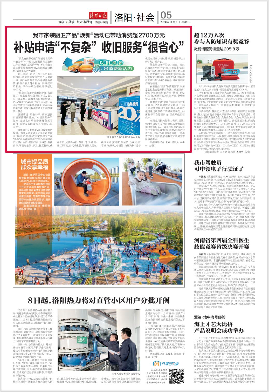 “沙发有按摩功能”“智能晾衣架手一触即停”……近日,随着洛阳家装厨卫产品“焕新”活动的开展,不少消费者或是计划换智能马桶,或是添置扫地机,消费市场活力满满。