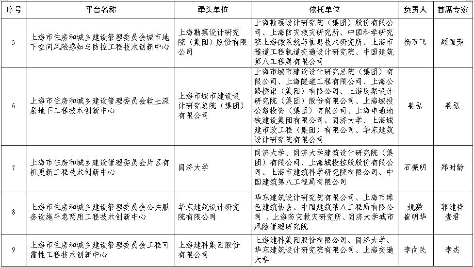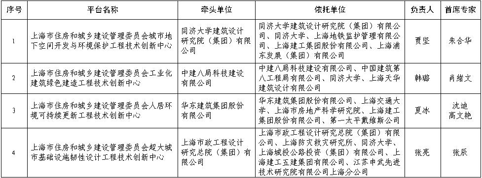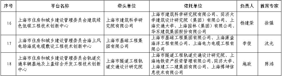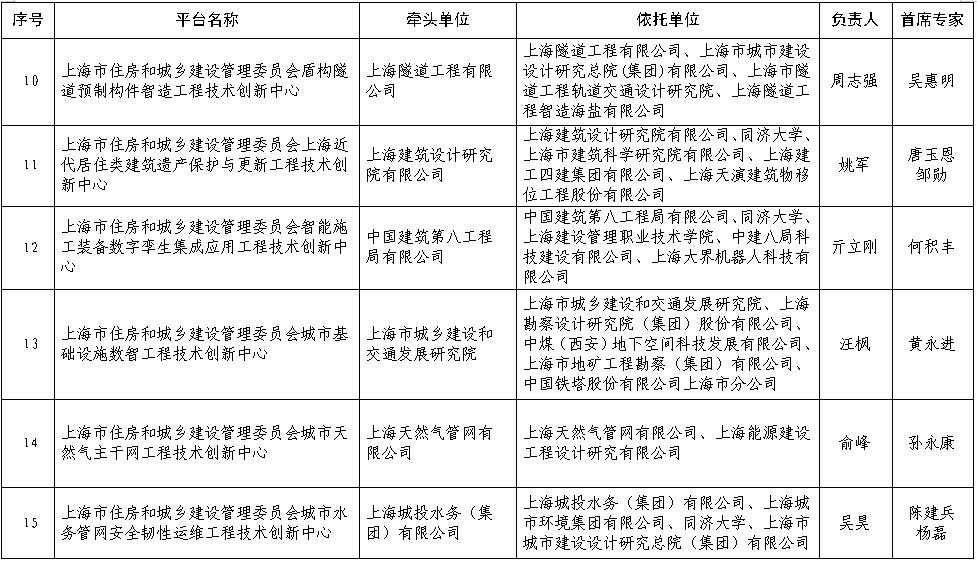 上海市住房和城乡建设管理委员会科技创新平台(工程技术创新中心)