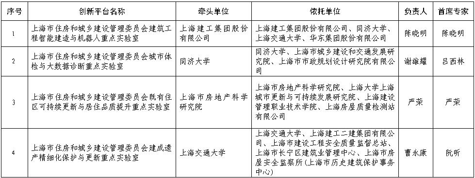 【聚焦】上海市住房和城乡建设管理委员会科技创新平台(第一批)正式发布