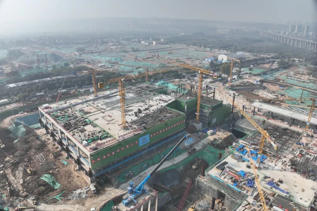 走进西安东站建设工地可以看到,不同单位、工种的施工作业人员在中国铁路西安局集团有限公司总体组织协调下,分布在地上、地下各个位置,熟练操作各类施工机械和设备仪器,紧张有序、同步推进侧式站房和高架站房主体结构的施工作业,为西安东站整体建设进入新阶段打下基础。