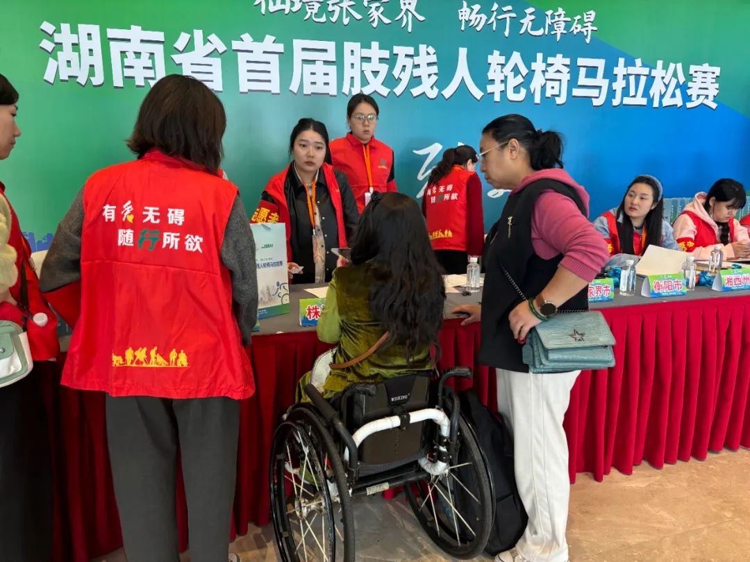 上午,刚下高铁的株洲代表队参赛选手及随行志愿者来到湖南首届肢残人轮椅马拉松赛报到处报到。在志愿者的帮助下,参赛选手领取了参赛证、号码布、收纳包等参赛物资。同时,现场志愿者还细心体贴地帮助每一位参赛选手办理房间入住。值得一提的是除生活轮椅外,所有参赛选手的参赛轮椅统一由主办方提供。