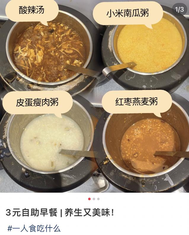 图源@momo一部分人试过之后,觉得3块钱早餐自助太寒酸,“到店里只能吃稀餐”,但更多的打工人已经把3元自助早当成了“当代舍粥棚”。