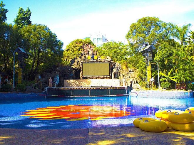 在热矿泥温泉度假村的温泉区30多个不同主题