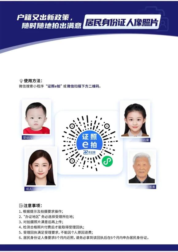 ✔公安派出所或政务服务中心居民身份证窗口提供照相服务仍然免费。