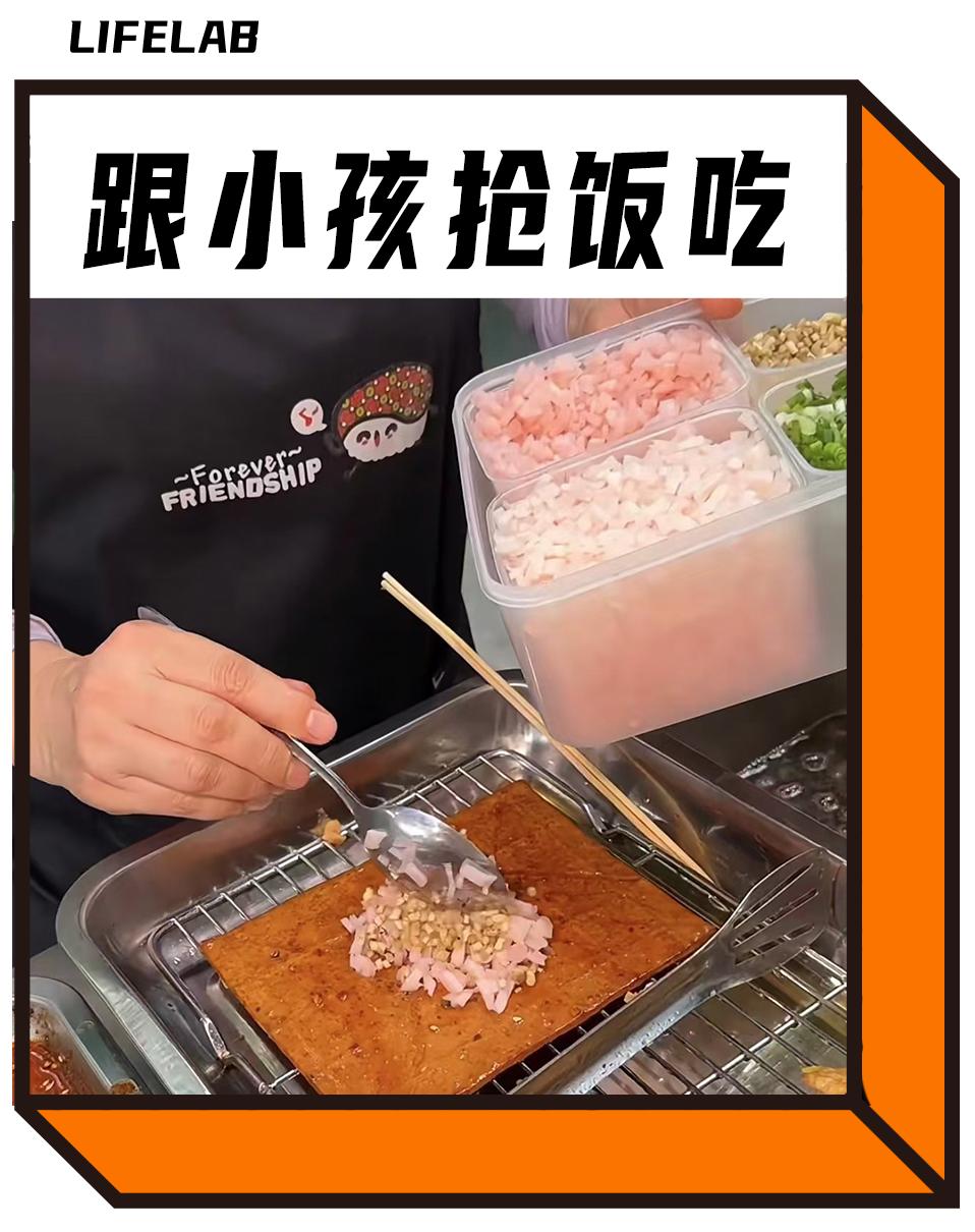 这两年许多年轻人,都顶着“重养自己一遍”的名义,去实现童年时未满足的诸多愿望。大家在过程中,可能会发现当年想去的游乐园,迫切想尝试的玩具,如今真正得到后已经无足轻重。唯独让所有人能体验到满分幸福感的事情,就是经济独立后,重回校园门口的小吃街大吃一通。“大家平时吃习惯了菜式固定的工作餐,对干饭这件事的期待值正越来越低。但校园门口的小吃摊,做法却花样百出,煎炸烤煮样样俱全。让人有一种翻身打工人把歌唱,美美实现自助自由的感觉。”